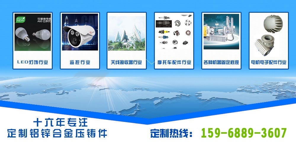 LED燈飾壓鑄件     監控器材壓鑄件     天線接收器壓鑄件     電機配件壓鑄件     摩托車配件壓鑄件     齒輪泵壓鑄件     鋅合金壓鑄件     摩擦材料     沖壓件     電機剎車片